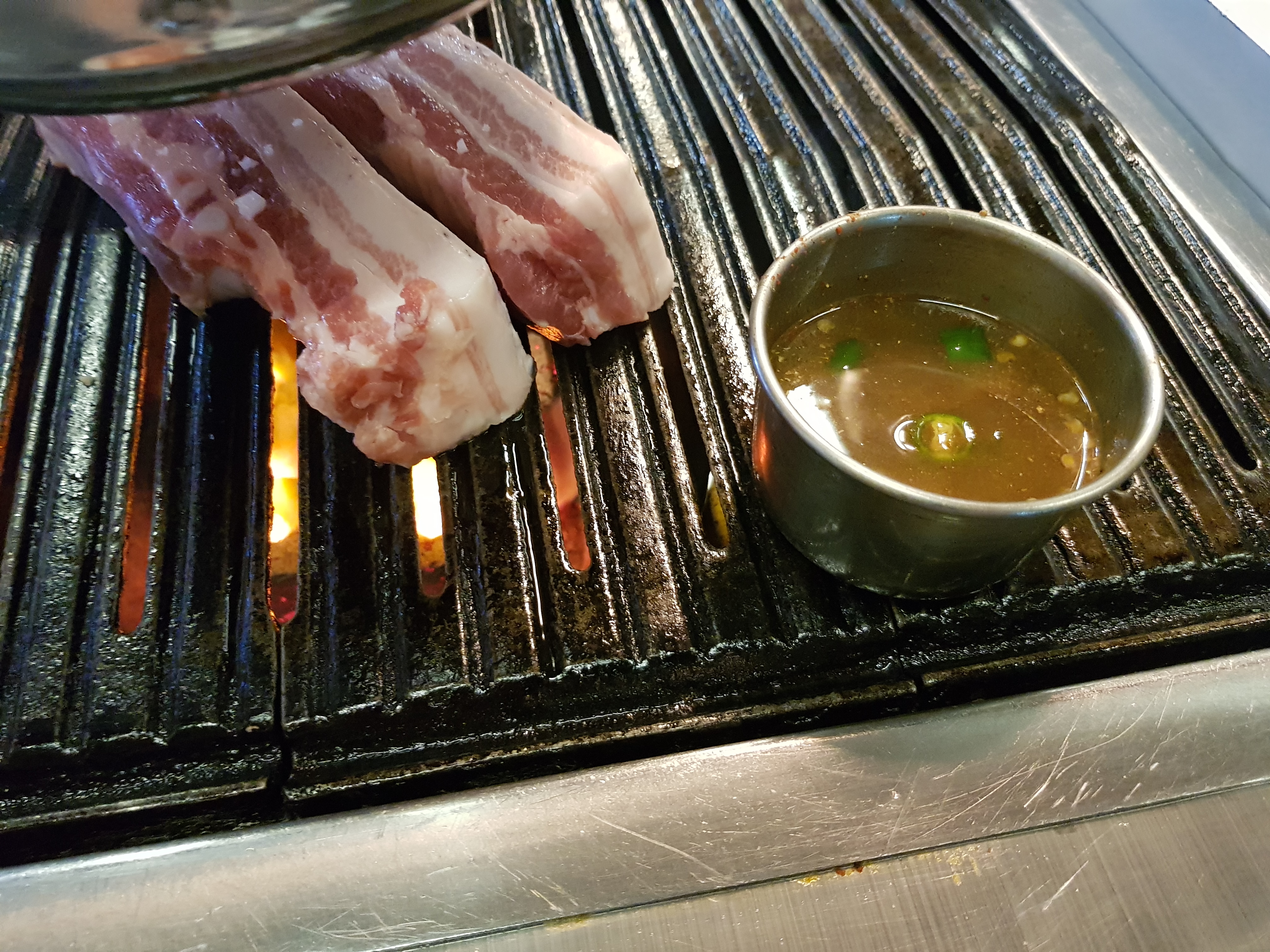 그래도 제주도까지 왔는데 하면서 시켜본 흑돼지 오겹 2인분이에요.