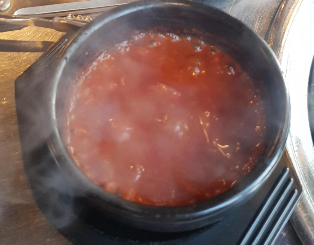 바다를 본 흑돼지 2인 세트에 서비스로 나오는 멜젓입니다. 엄청 찐해 보이죠? 런치에는 멜젓을 별도로 주문해야 하더라고요. 다른 흑돼지 집은 기본적으로 제공이 되던데 특이하네요. 어쨌든 저희는 바다를 본 흑돼지 2인 세트로 주문했기에 여기 멜젓도 맛봤어요. 제주도 흑돼지 먹을 때 요 멜젓 빠지면 이제는 정말 아쉽더라고요.
