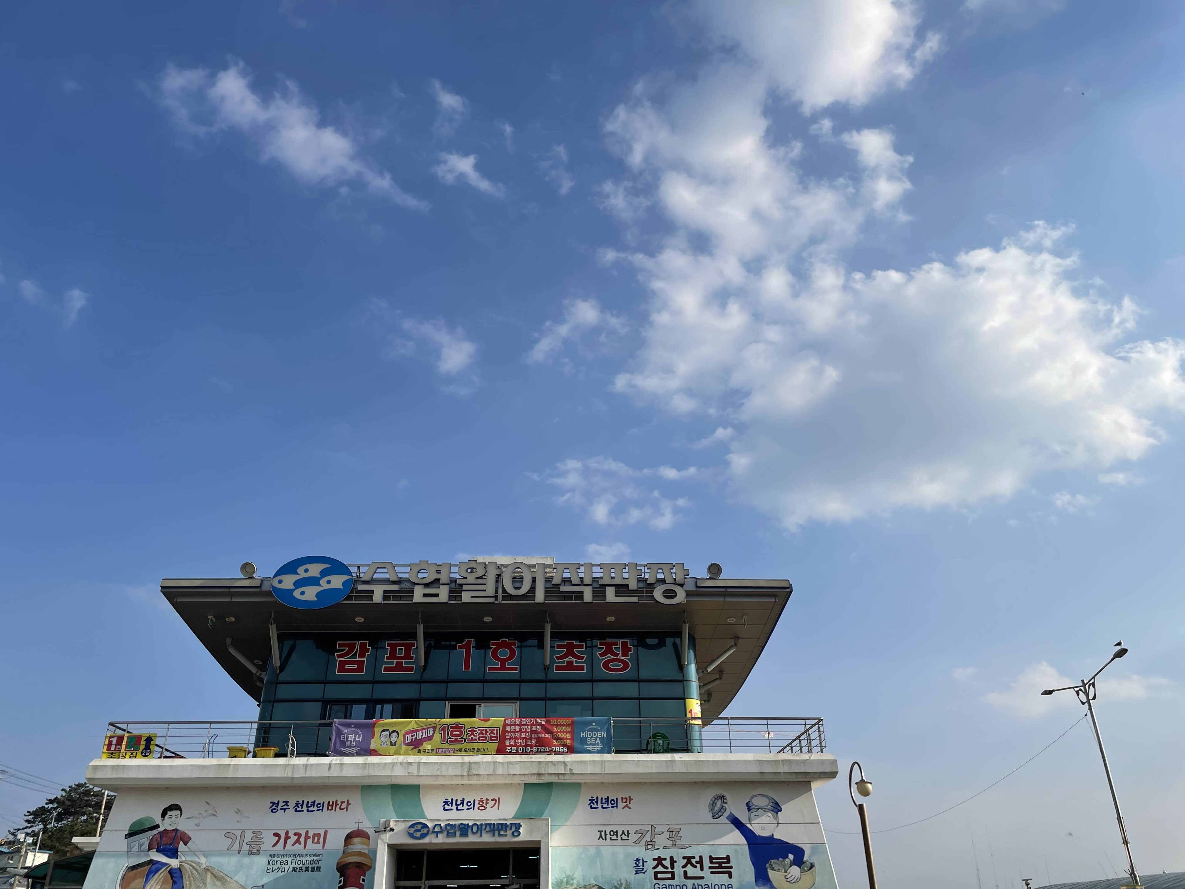 주말임에도 감포 수협활어직판장에서 여유롭게 맛있는 대게를 즐길 수 있어서 추천할게요. 바로 앞에 넓은 주차장을 구비해 두고 있어 주차도 너무 편하고 붐비지 않아서 좋더라고요.