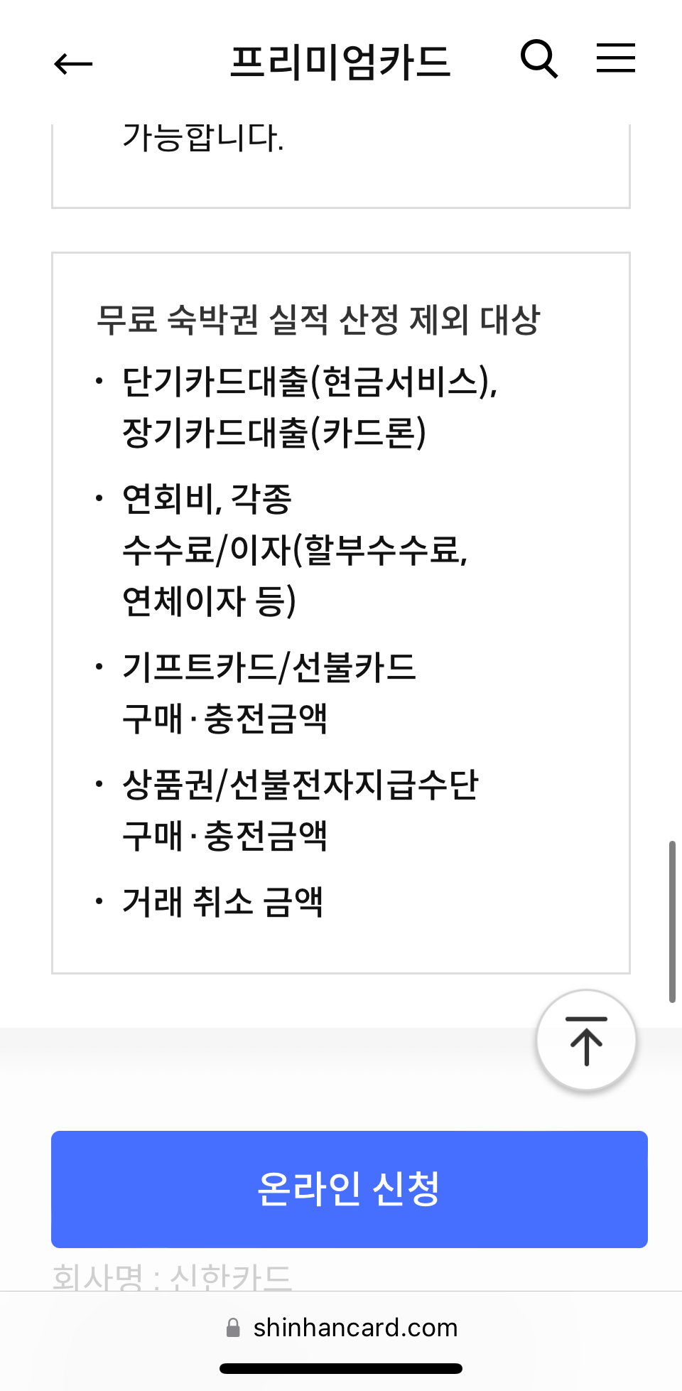 따라서 세금 납부한 금액은 신한 메리어트 무료숙박권 실적 산정 시 포함되는 항목이라는 걸 알 수 있다.