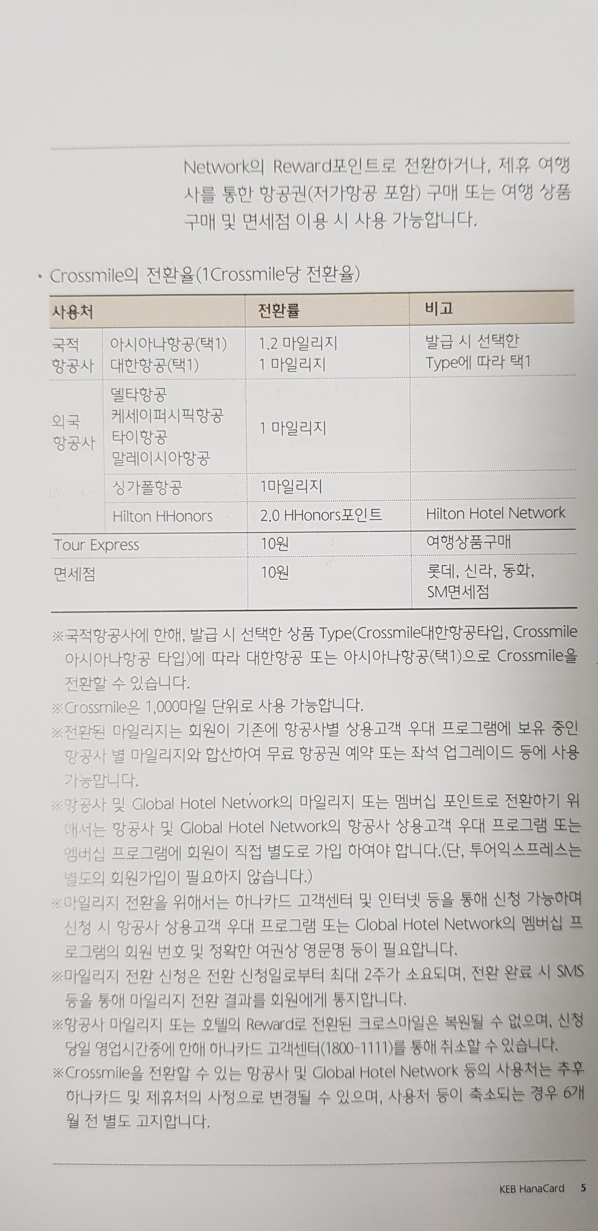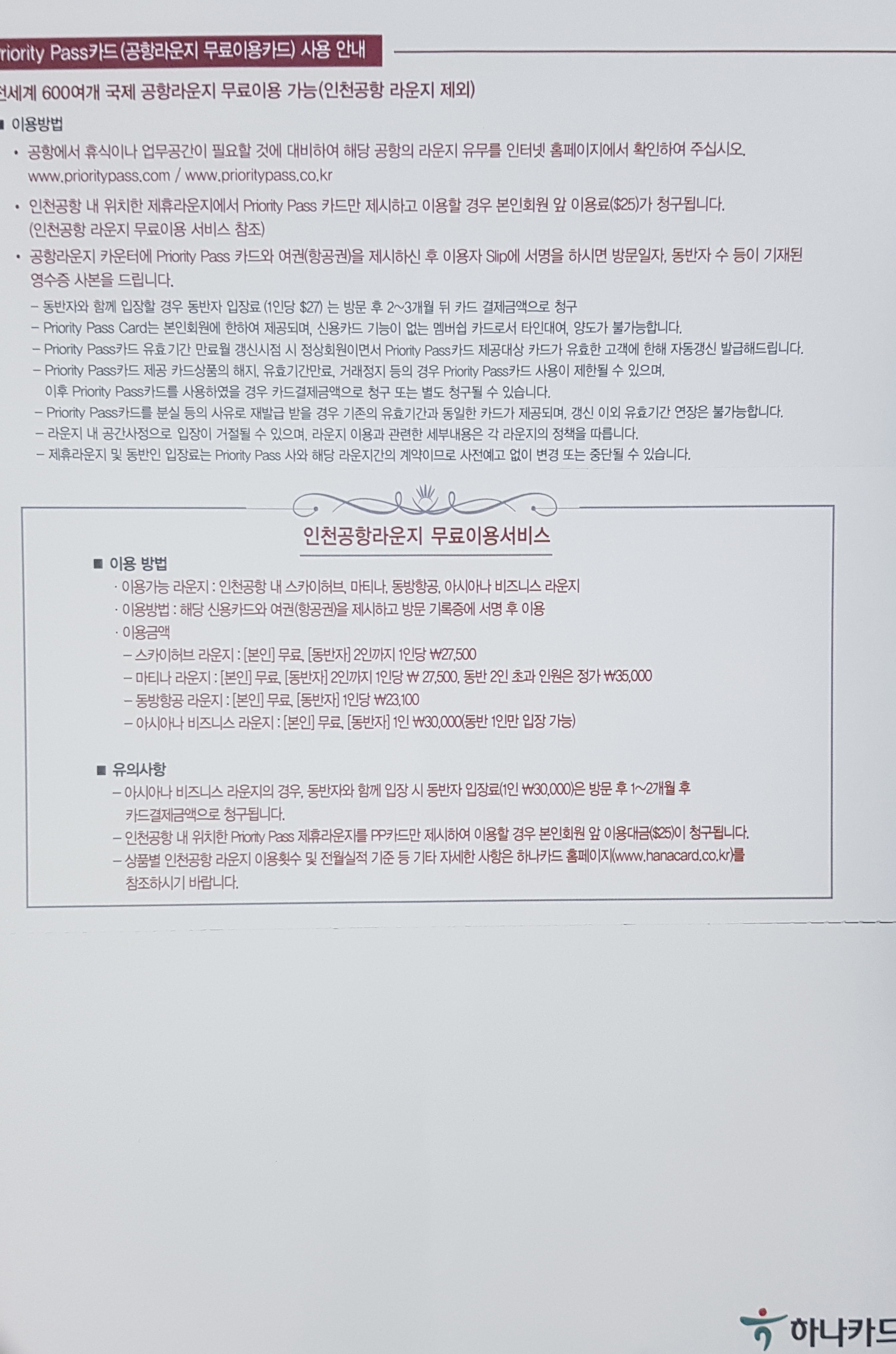 아래는 17년 가입 당시 받은 카드 설명서입니다.