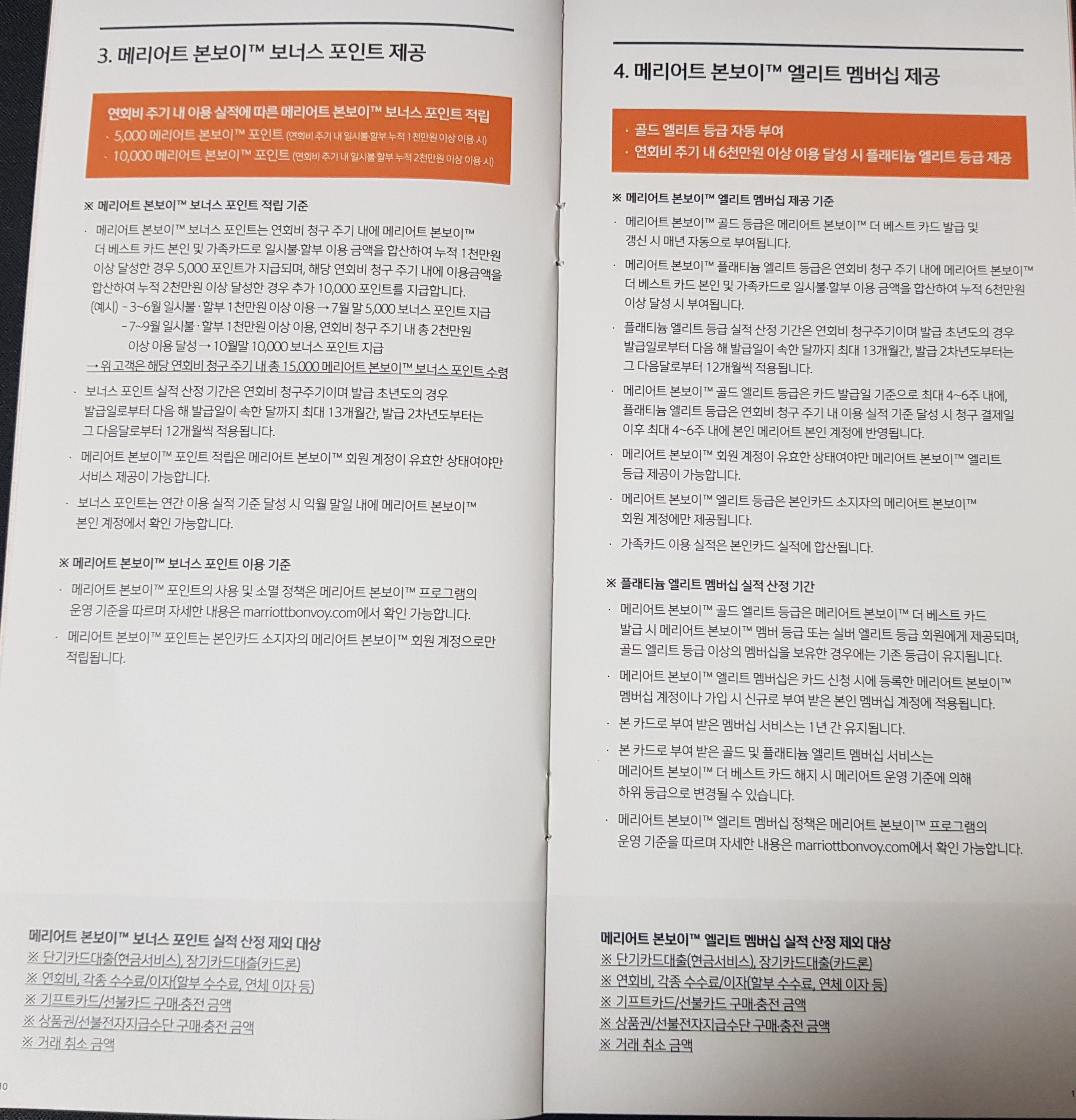 연회비 주기내 1천만원 이상 이용시 5,000메리어트 포인트