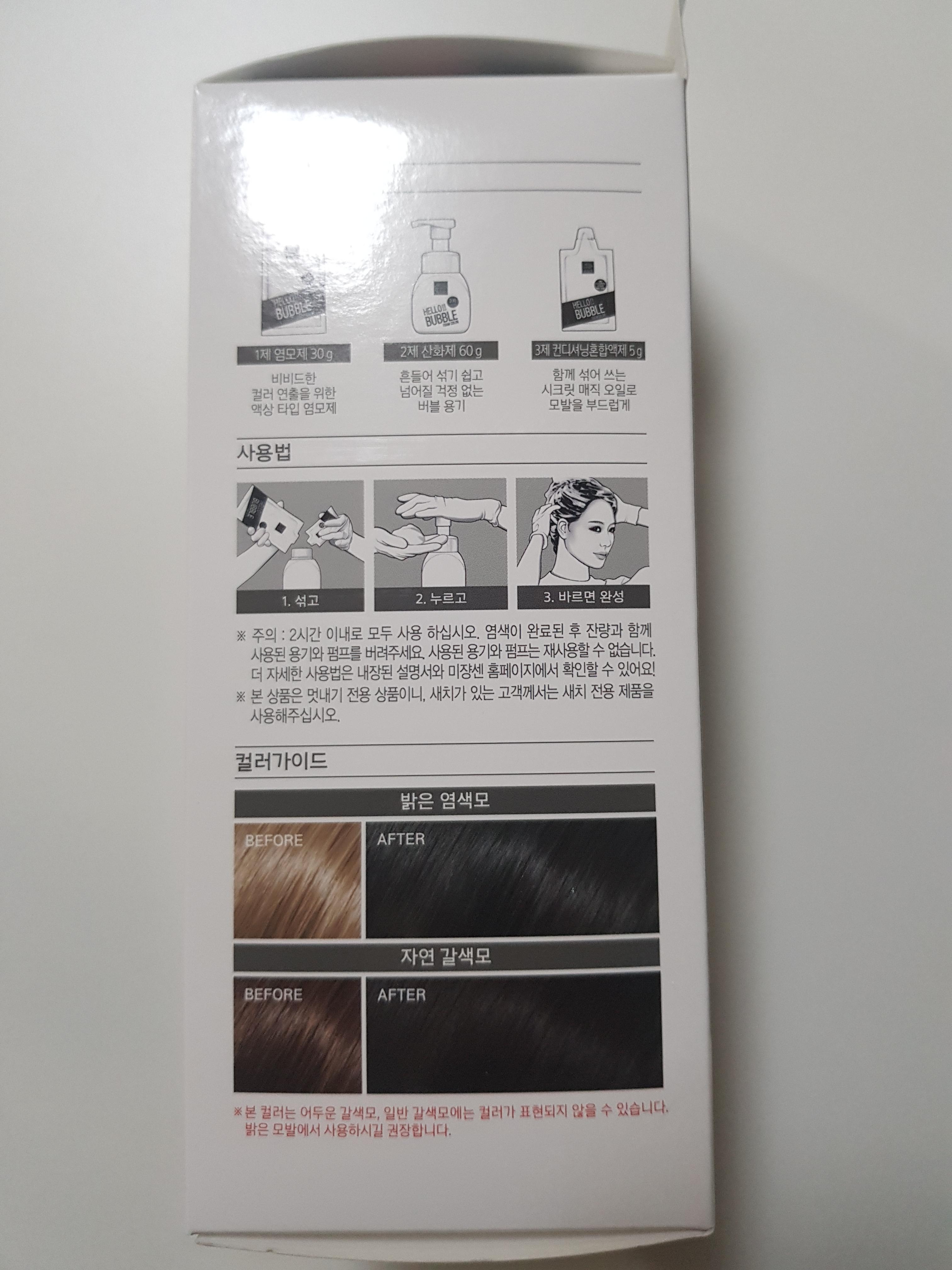 머리숱 많은 분들은 전체 염색을 하실때 헬로버블 1통으로 모자랄 수 도 있을 거 같네요.