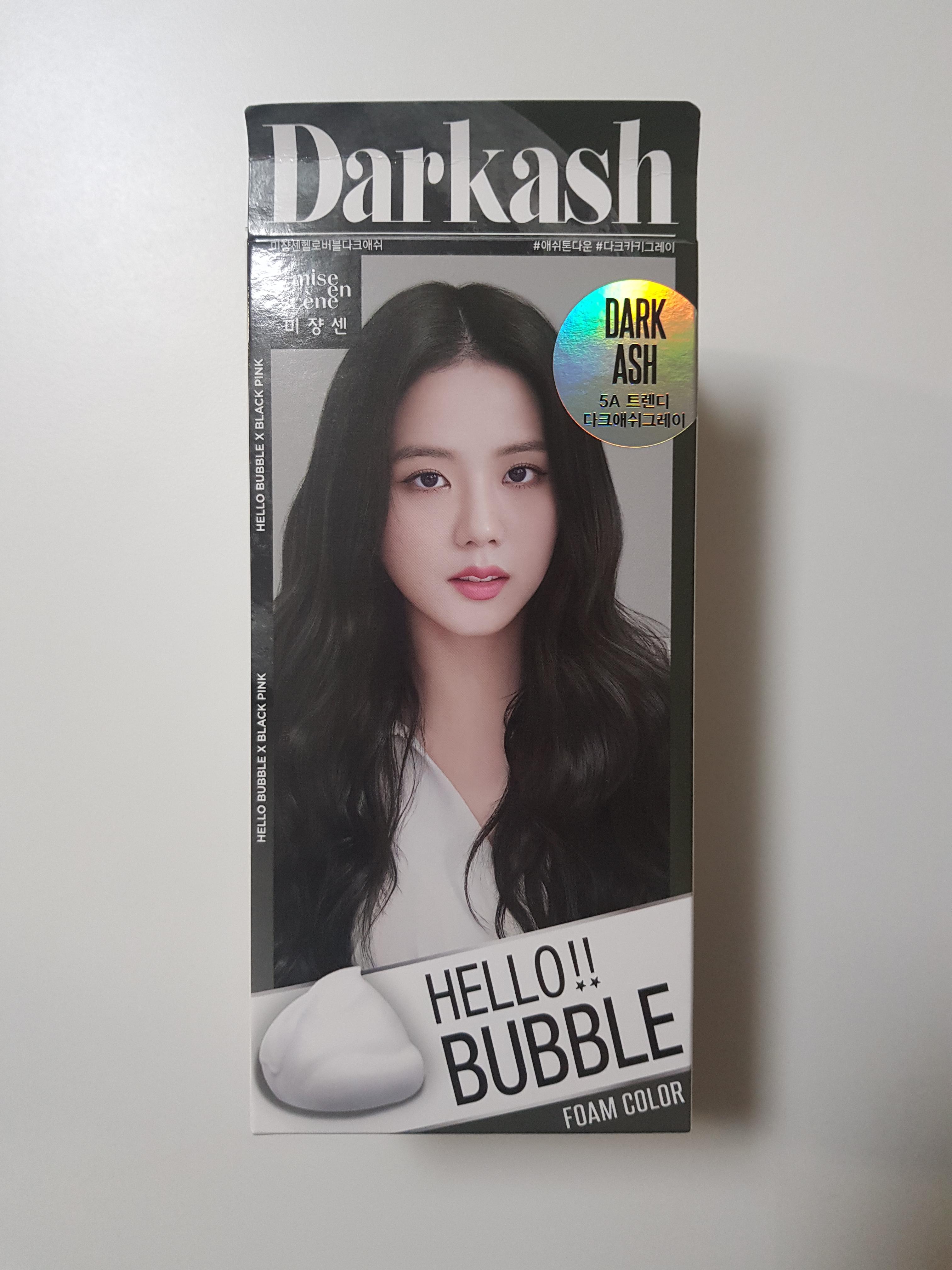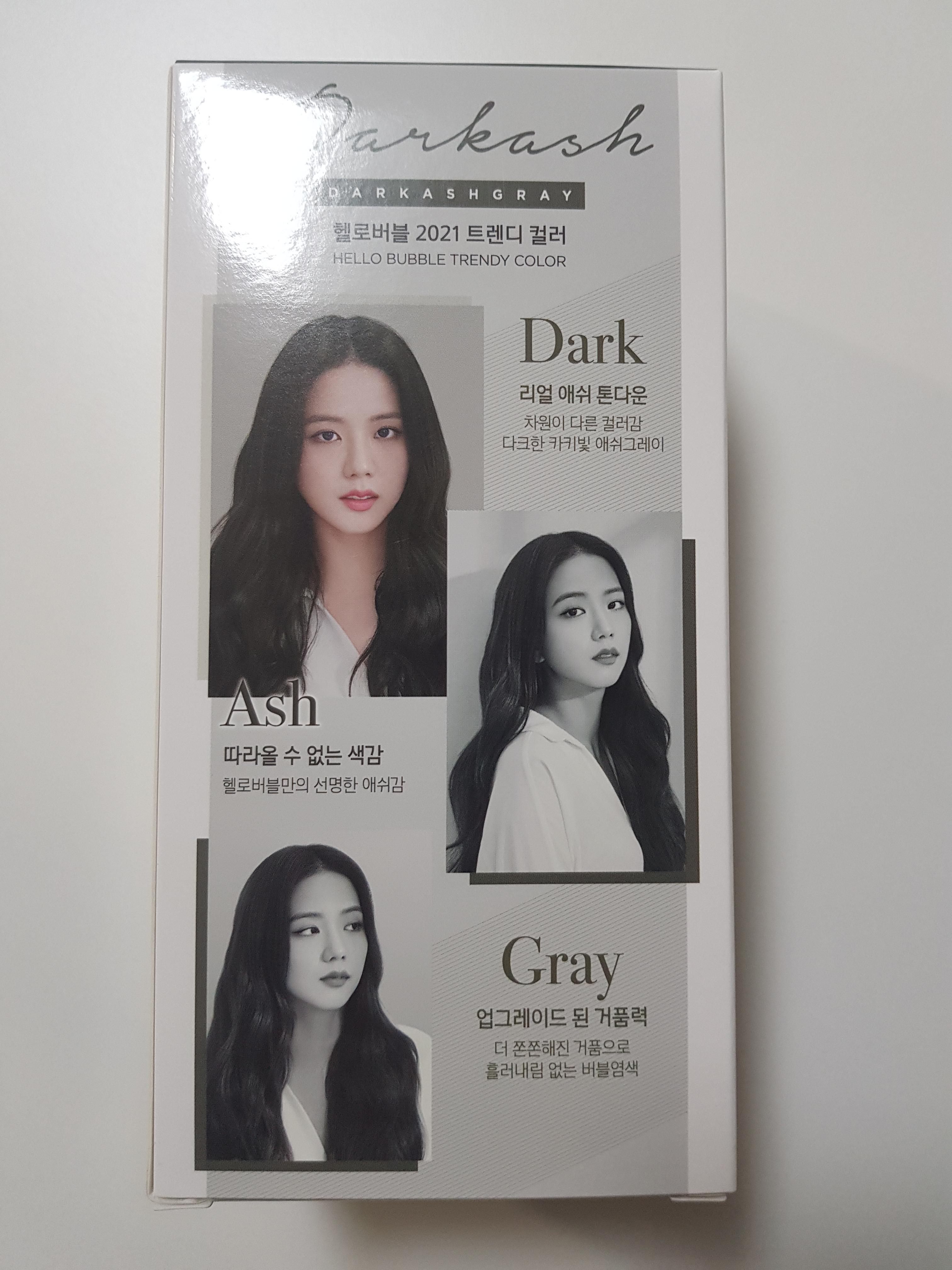 원래는 완전 블랙컬러로 염색하려고 했는데 미쟝센 헬로버블 완전 블랙 색상인 미스틱블랙 1B 턴컬러는 버블형태가 아니라는 후기를 보고 포기하고 고민하다가 선택한 미쟝센 다크애쉬그레이 색상입니다.
