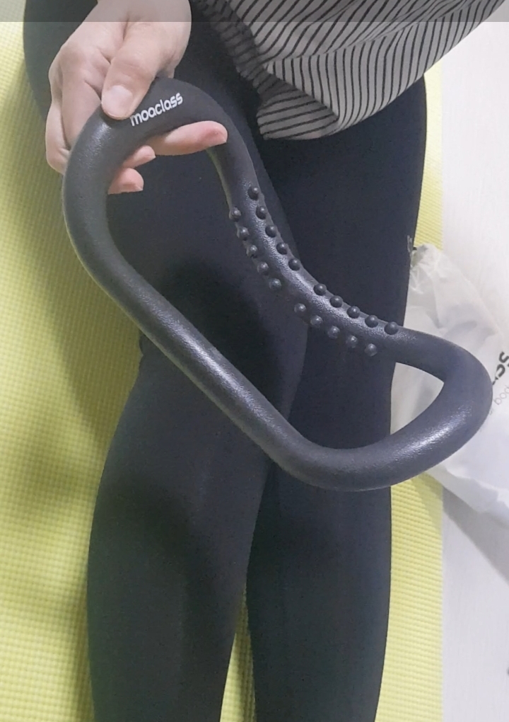 요가링 돌기를 종아리 안쪽을 맞닿게 끼우면 종아리 알을 너무 시원하게 지압해주네요.