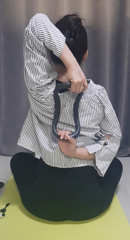 저 같은 경우 의자에 앉아 목뒤에 요가링을 두고 머리를 좌우로 살살 굴리다보니 뒷목 지압이 되서 너무 좋더라고요.